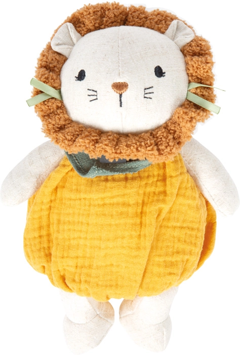 Uroczy pluszowy lewek od small foot został stworzony do przytulania i spokojnego zasypiania. Ma miękką w dotyku powierzchnię, delikatnie wyściełane ciało oraz teksturyzowaną tkaninę muślinową, która zachęca do dotykania i chwytania. Idealny pierwszy przyjaciel dla niemowląt i maluchów, wspiera percepcję sensoryczną oraz małą motorykę i świetnie leży w małych rączkach.