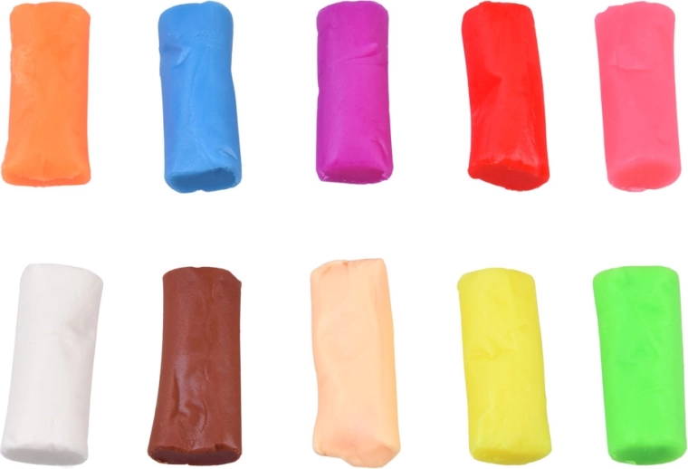 - 10 kolorów plasteliny – miękka, łatwa do formowania dla małych rączek