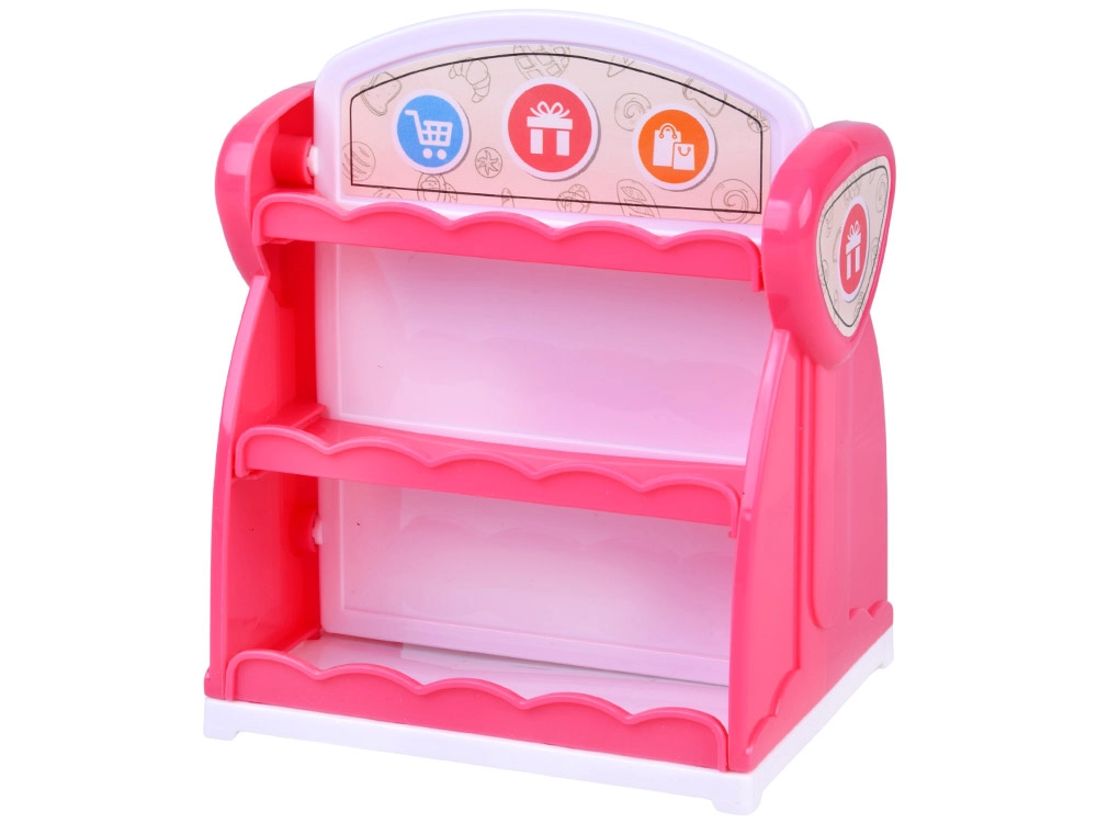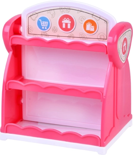 Różowy, lekki i łatwy do czyszczenia regałek z dwiema stronami i kilkoma półkami zamieni pokój w mały sklep z wytworami z plasteliny.