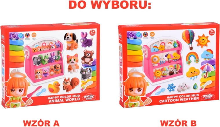 Z formą A dzieci z łatwością stworzą misia, królika, kaczkę, pieska, kotka i wiewiórkę – idealne do pierwszego modelowania i tworzenia własnych historii.