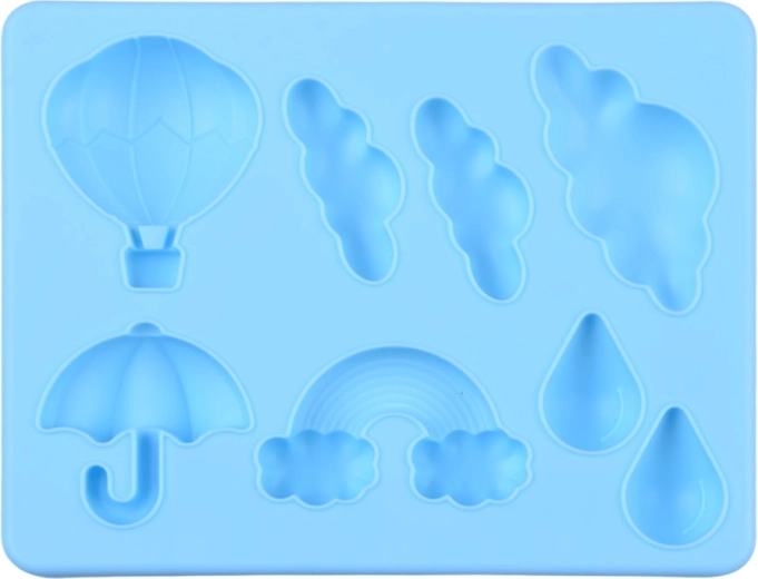 - Tematyczne foremki – zwierzątka i motywy pogody dla urozmaiconej zabawy