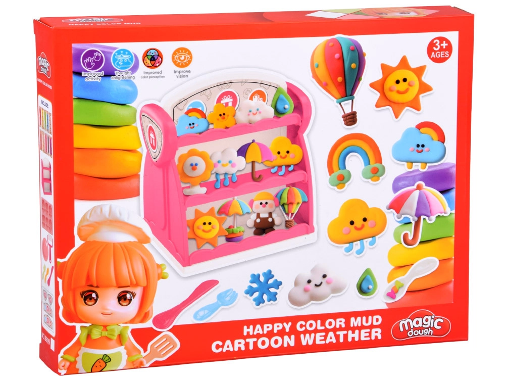 Rozbudź dziecięcą wyobraźnię kreatywnym zestawem z plasteliną, który zawiera 10 żywych kolorów, dwustronny regałek w kształcie sklepiku, miękkie foremki ze zwierzątkami i motywami pogody oraz praktyczne narzędzia do modelowania. Świetny wybór dla rozwoju małej motoryki, cierpliwości i twórczości.