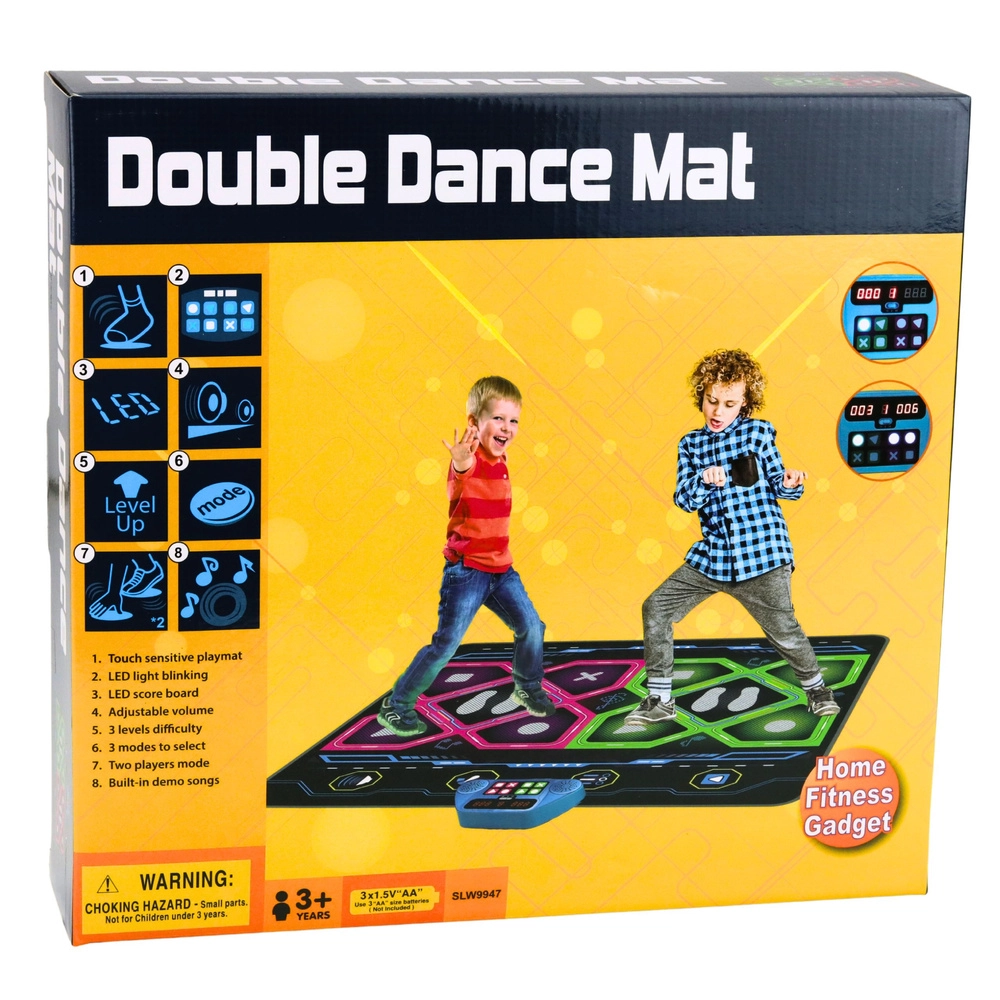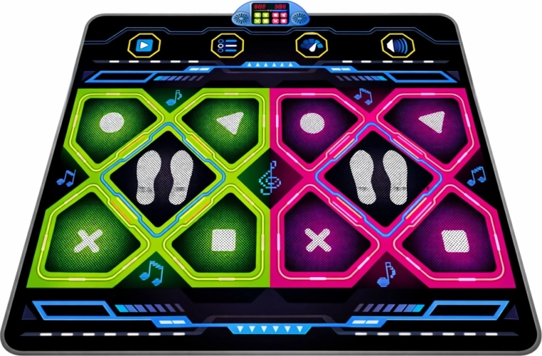 Wbudowany panel sterowania z głośnikiem umożliwia regulację głośności oraz wybór 3 trybów gry i 3 poziomów trudności. Wytrzymała powierzchnia, konstrukcja antypoślizgowa i duży rozmiar 105 × 90 cm zapewniają komfort i bezpieczeństwo podczas tańca. Świetna do domu, na przyjęcia dla dzieci i spotkania z przyjaciółmi.