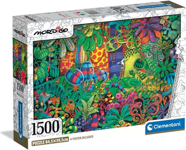 Zanurz się w świecie humorystycznych ilustracji MORDILLO i odkryj radość z układania puzzli CLEMENTONI. Wysokiej jakości nadruk, dokładne wycięcia i solidny karton zapewniają idealne dopasowanie i długą żywotność. Puzzle z 1500 elementami to idealny wybór dla bardziej zaawansowanych miłośników układanek, którzy szukają wyzwania i relaksu.