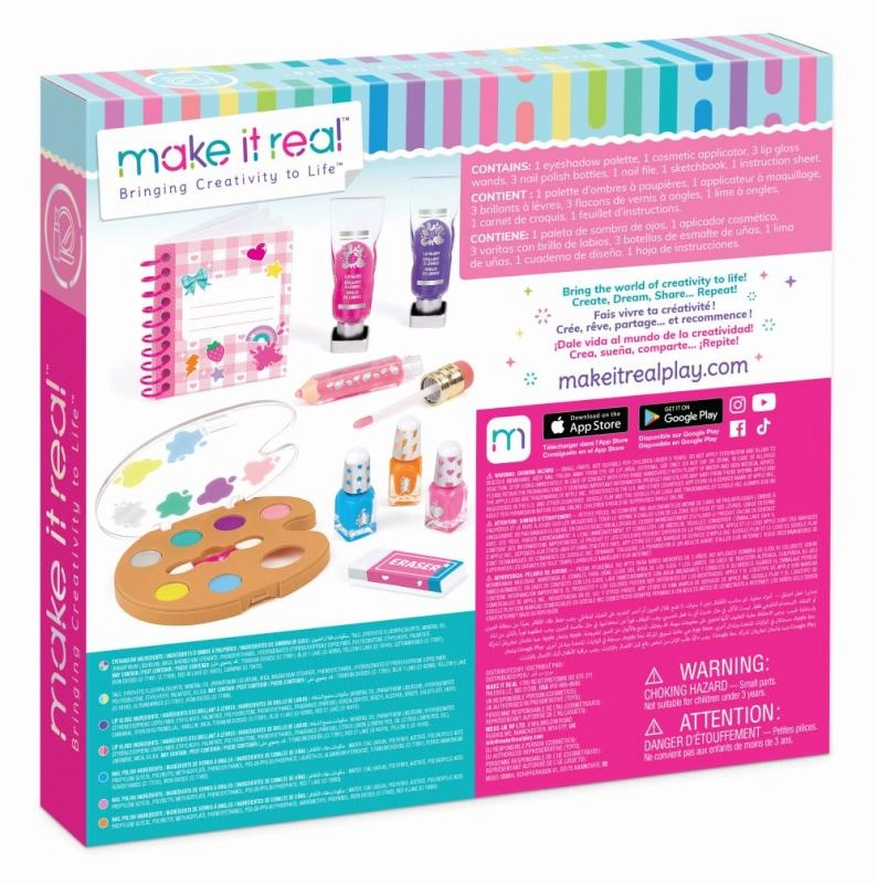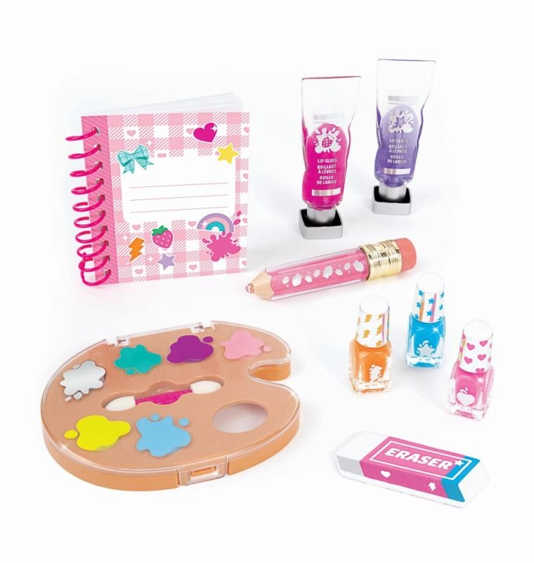 W zestawie znajdują się błyszczyki stylizowane na malarskie tubki, trzy lakiery do paznokci w żywych odcieniach oraz pilnik do paznokci w kształcie gumki, aby uzyskać perfekcyjnie zadbane paznokcie. Wszystko zaprojektowano tak, by wspierało kreatywną zabawę, bezpieczne eksperymentowanie i rozwój stylu u dzieci od 8 lat.
