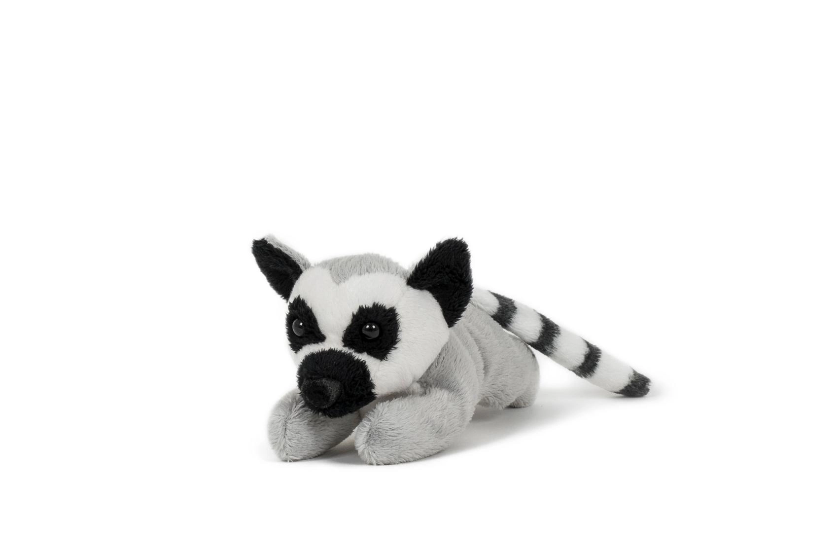 Uroczy pluszowy lemur katta w pozycji leżącej zachwyca typowym czarno‑białym ubarwieniem i długim, prążkowanym ogonem. Dzięki realistycznemu wykonaniu, miękkiemu i delikatnemu materiałowi oraz przyjaznemu wyrazowi pyszczka szybko stanie się ulubionym towarzyszem do przytulania i zabawy w domu oraz w podróży.