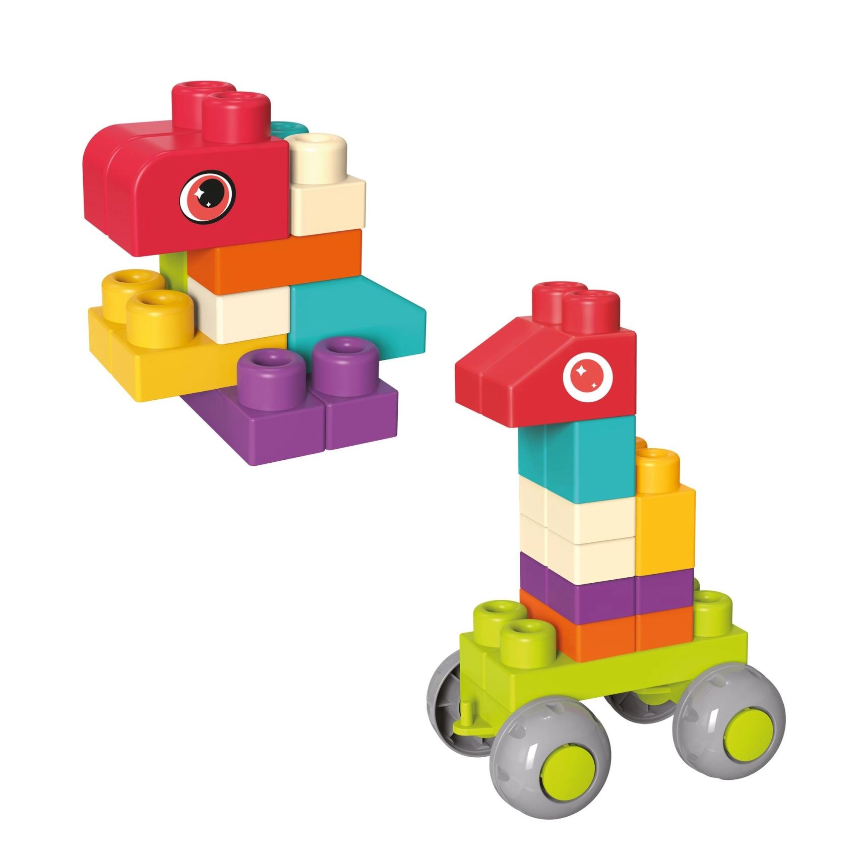 Zestaw zawiera elementy oraz podwozie z kółkami do prostych jeżdżących zwierzątek i pojazdów. Idealne do dynamicznej zabawy i rozwijania wyobraźni.