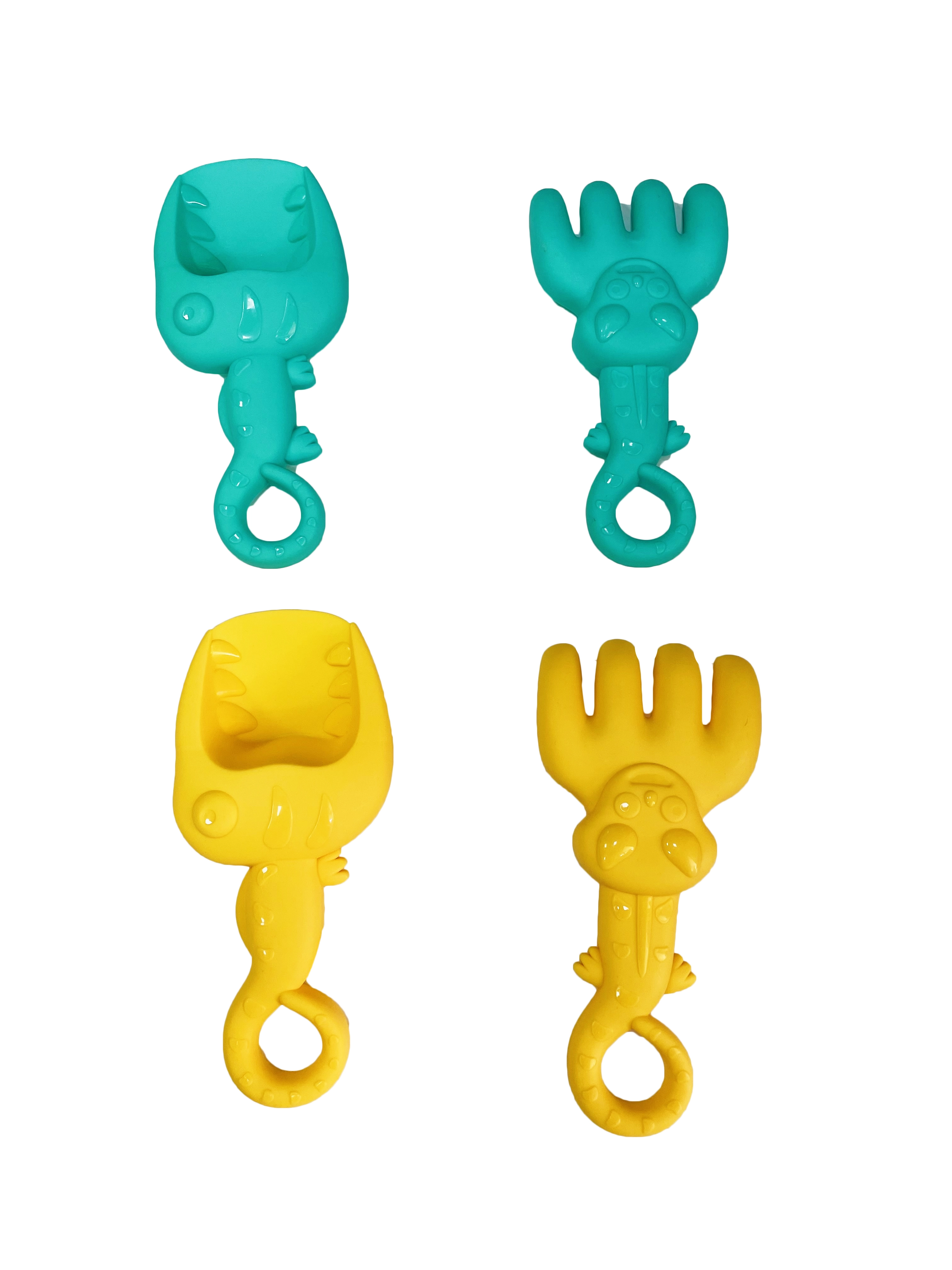 Cztery urocze kształty dinozaurów inspirują dzieci do pomysłowej zabawy i rozwijają ich wyobraźnię.
