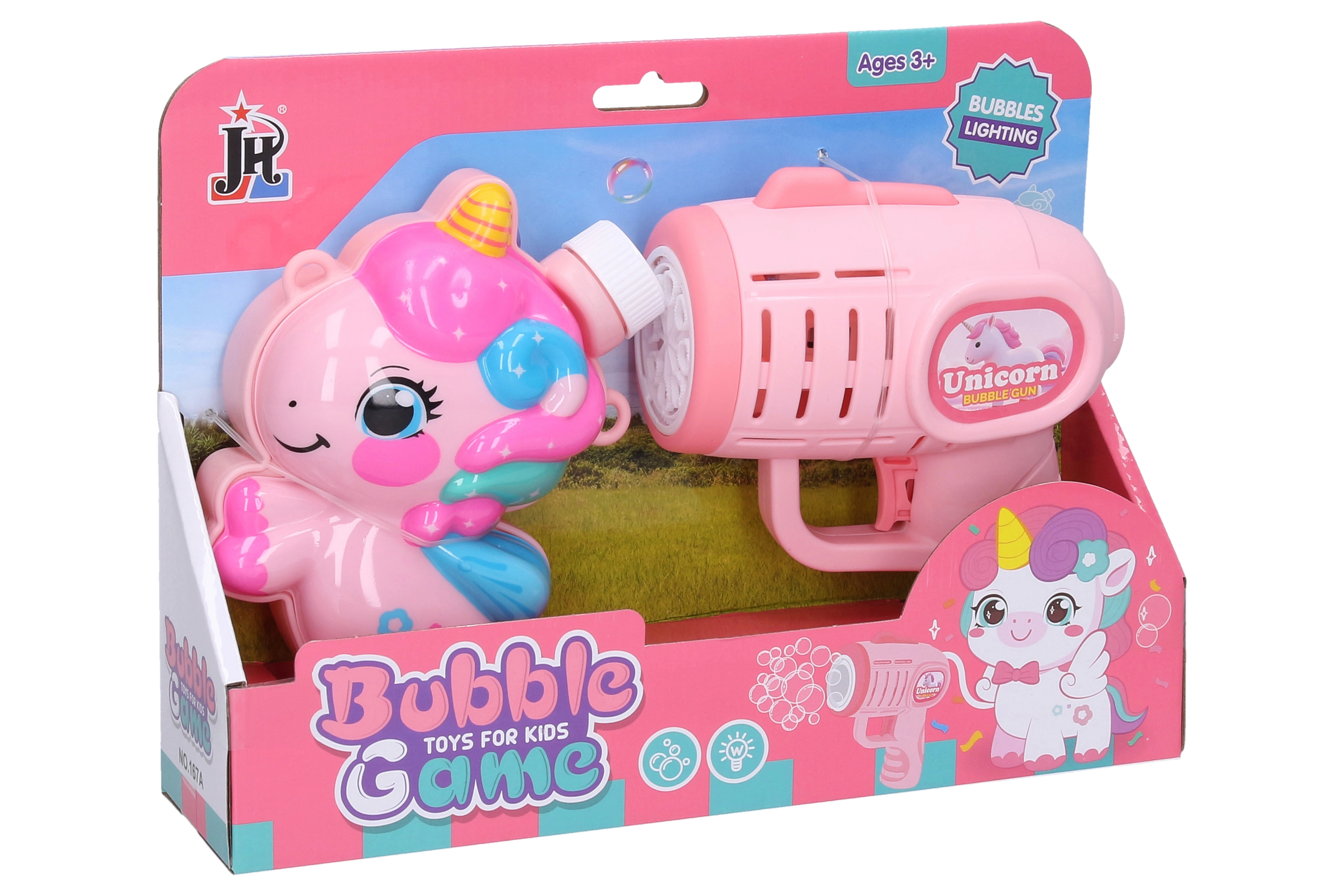Rozkręć zabawę urocym pistoletem do baniek w kształcie jednorożca, który dzięki zewnętrznemu zbiornikowi i pojemności 280 ml tworzy mnóstwo baniek bez częstego dolewania. Łatwa obsługa, kompaktowe wymiary oraz automatyczne dmuchanie na baterie ucieszą dzieci i rodziców.