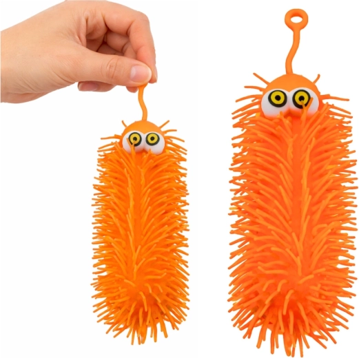 Sensoryczny gniotek w kształcie uroczego stworka wykonano z miękkiego i elastycznego materiału, który po ściśnięciu szybko wraca do pierwotnego kształtu. Tysiące delikatnych wypustek/frędzli zapewniają intensywne doznania dotykowe, sprzyjając wyciszeniu i koncentracji. Wewnątrz znajduje się kulka LED, która przy odbiciu zapala się i miga kolorowym światłem – zabawa staje się angażującą grą zmysłów.