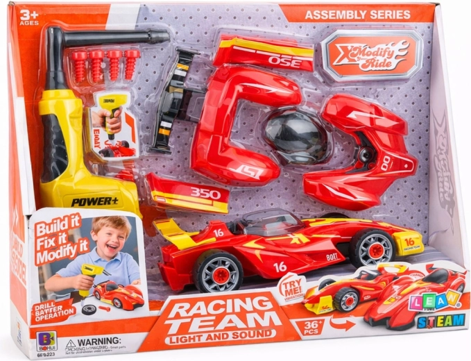Ten interaktywny zestaw do tuningu auta wyścigowego łączy zabawę z nauką. Dzieci samodzielnie montują i demontują elementy nadwozia, spoilery, koła i dodatki, testując różne wyglądy prawdziwej „formuły”. Bateryjna wkrętarka ułatwi pracę małego mechanika, a efekty świetlne dodadzą autu wyścigowego sznytu.