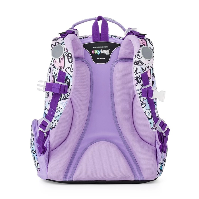 Zestaw szkolny OXY GO Funny Girl oferuje przemyślane rozwiązanie na pierwsze lata nauki. Plecak o pojemności 22 l ma przejrzysty układ wewnętrzny na podręczniki i zeszyty, boczne kieszenie (na zamek i otwartą) np. na butelkę oraz haczyki do mocowania dłuższych pasków. Ergonomicznie wyprofilowane i wentylowane plecy wraz z wyściełanymi, regulowanymi szelkami zapewniają wygodę nawet przy codziennym noszeniu.