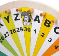 Segmenty z literami A–Z i liczbami 1–30 plus 4 jokery otwierają szerokie możliwości do gier, konkursów i aktywności edukacyjnych.