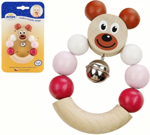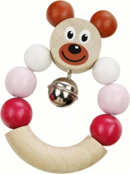 Urocza drewniana grzechotka z misiem w różowym kolorze ucieszy każde niemowlę. Zintegrowany dzwoneczek delikatnie dzwoni, grzechotka jest bardzo lekka i dzięki kompaktowym wymiarom 7 × 9 cm świetnie leży w małych rączkach. Produkt spełnia surowe wymagania UE dotyczące bezpieczeństwa zabawek i może pochwalić się certyfikatem Bezpieczna zabawka.