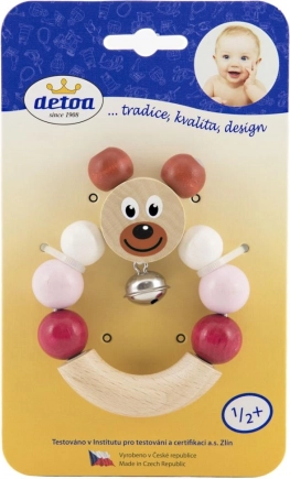 Detoa grzechotka miś w różowym kolorze to idealna pierwsza zabawka wspierająca rozwój słuchu, dotyku i motoryki. Delikatny dźwięk dzwoneczka zaciekawi maluszka, a przyjemne materiały i kształt sprzyjają bezpiecznemu i wygodnemu chwytaniu.