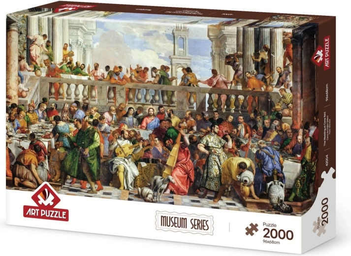 Zrelaksuj się przy wysokiej jakości puzzlach Art Puzzle – Wesele w Kanie z 2000 elementami. Duży format po ułożeniu, około 96 × 68 cm, doskonale prezentuje się na ścianie lub macie do puzzli. Producent dodatkowo oferuje usługę dosłania brakującego elementu po podaniu numeru partii i przy dostępności motywu.