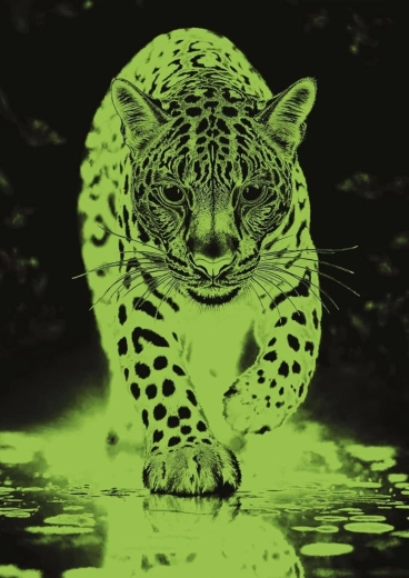 Odkryj zabawę, która lśni także po zmroku: neonowe fluorescencyjne puzzle z motywem niebieskiego jaguara świecą w ciemności i tworzą magiczną atmosferę. Specjalna neonowa farba w ciągu dnia ładuje się światłem, a nocą przez kilka godzin emituje blask – idealne na spokojne wieczory i relaks przy układaniu 1000 elementów.