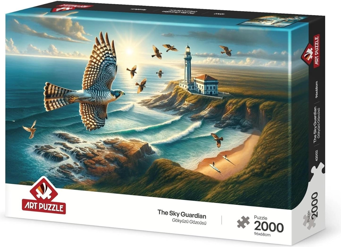Ciesz się godzinami relaksu i koncentracji z puzzlami „Strażnicy niebios” o 2000 elementach, które po ułożeniu stworzą imponujący obraz o wymiarach ok. 96 × 68 cm. Producent ART PUZZLE dodatkowo oferuje usługę dosłania brakującego elementu, jeśli motyw jest nadal w ofercie i przedstawisz numer serii produkcyjnej z pudełka.