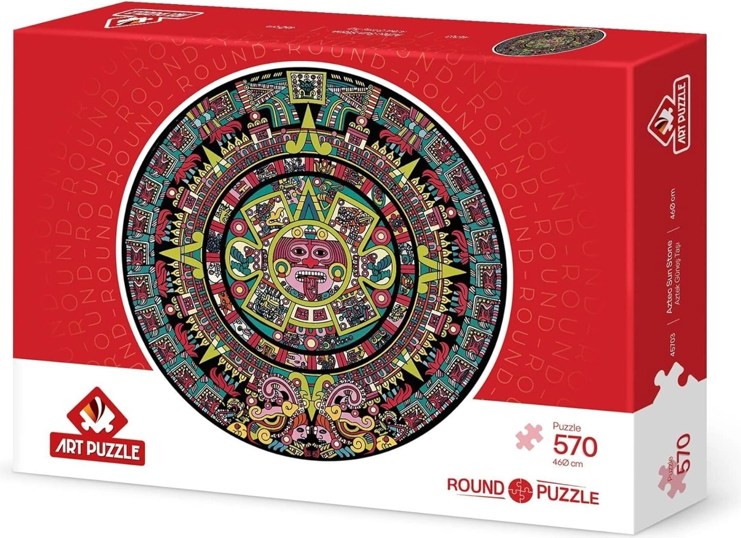 Zanurz się w tajemniczym pięknie kultury Azteków z okrągłymi puzzlami, które po ułożeniu tworzą szczegółowy motyw kamienia słonecznego. Dzięki 570 starannie wykonanym elementom układanka jest idealna do relaksu, ćwiczenia koncentracji oraz wspólnych chwil z rodziną.