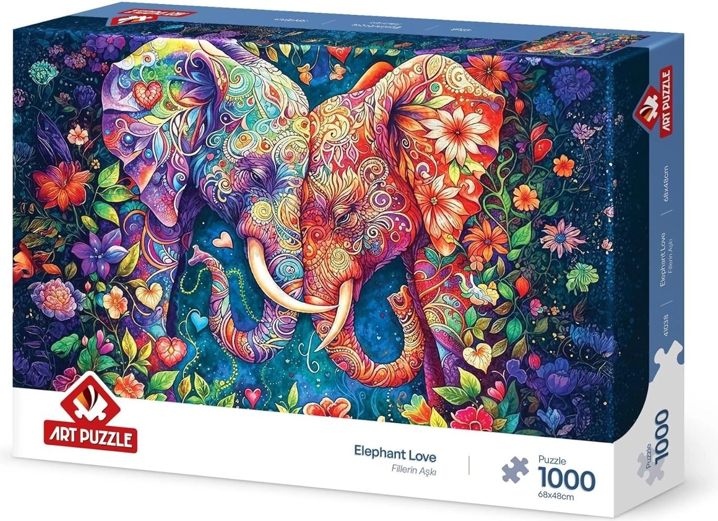 Ciesz się relaksem i dobrze spędzonym czasem z puzzlami „Słonia miłość” od ART PUZZLE. Dzięki 1000 starannie wyciętym elementom i harmonijnemu motywowi układanie jest płynne i przyjemne, a efekt końcowy doskonale sprawdzi się jako dekoracja Twojego domu.