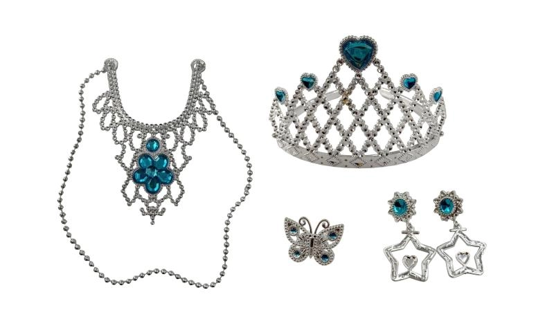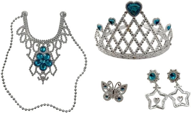 - Pełne wyposażenie – korona, naszyjnik, kolczyki i pierścionek.