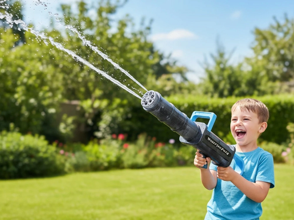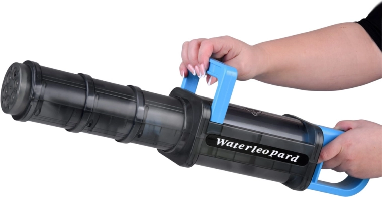 Elektryczny pistolet na wodę Waterleopard idealnie sprawdzi się w ogrodzie, nad jeziorem i na plaży. Wystarczy zanurzyć wlot ssący w wodzie, nacisnąć spust, a pistolet sam pobierze wodę – po kilku sekundach jesteś gotowy do strzelania. Podświetlenie LED lufy nadaje pojedynkom efektowną atmosferę, a dzieci i dorośli zyskają mnóstwo aktywnej zabawy.
