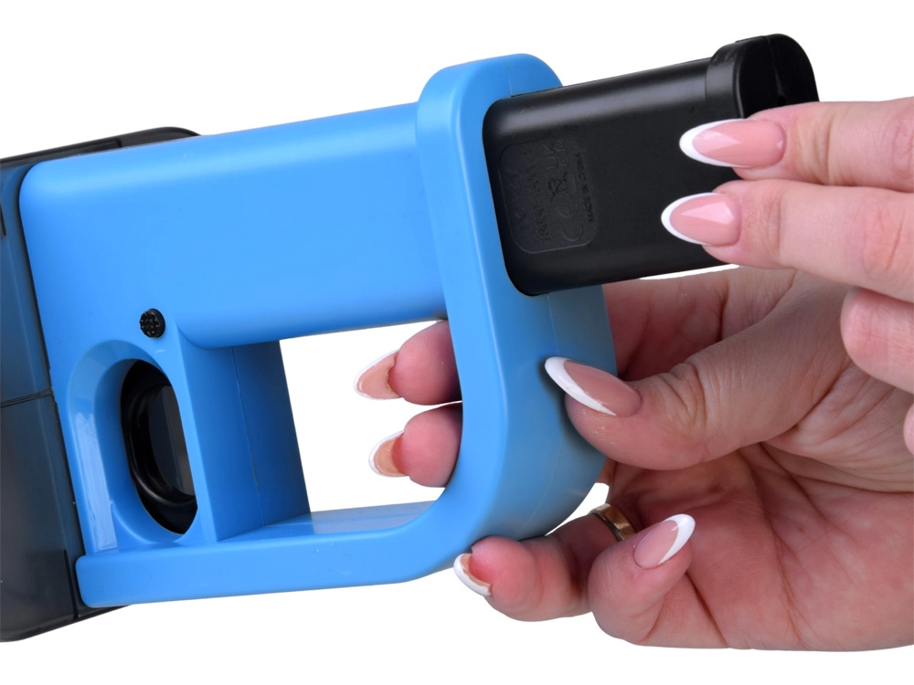 Wystarczy nacisnąć spust – pistolet sam pobiera wodę i wystrzeliwuje kilka mocnych strumieni bez wysiłku.