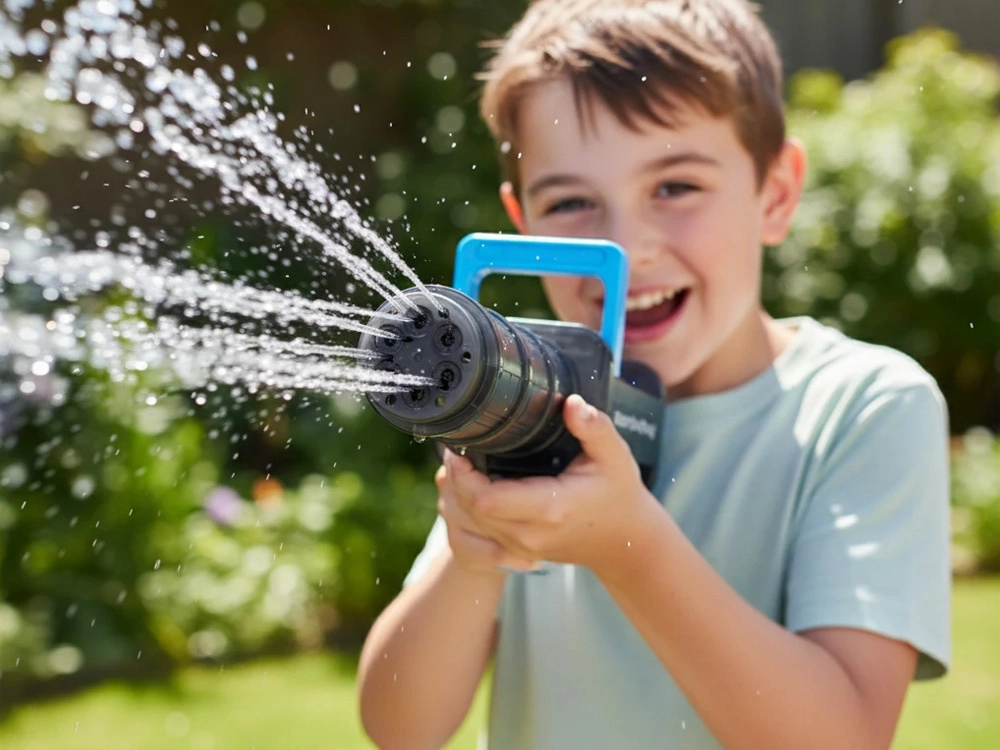 Przemyślana konstrukcja z górnym uchwytem i rękojeścią pistoletową ułatwia celowanie oraz dłuższe trzymanie. Wydajny system tworzy wiele strumieni wody i osiąga daleki zasięg, dzięki czemu zdominujesz każdą wodną potyczkę.