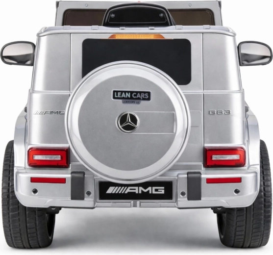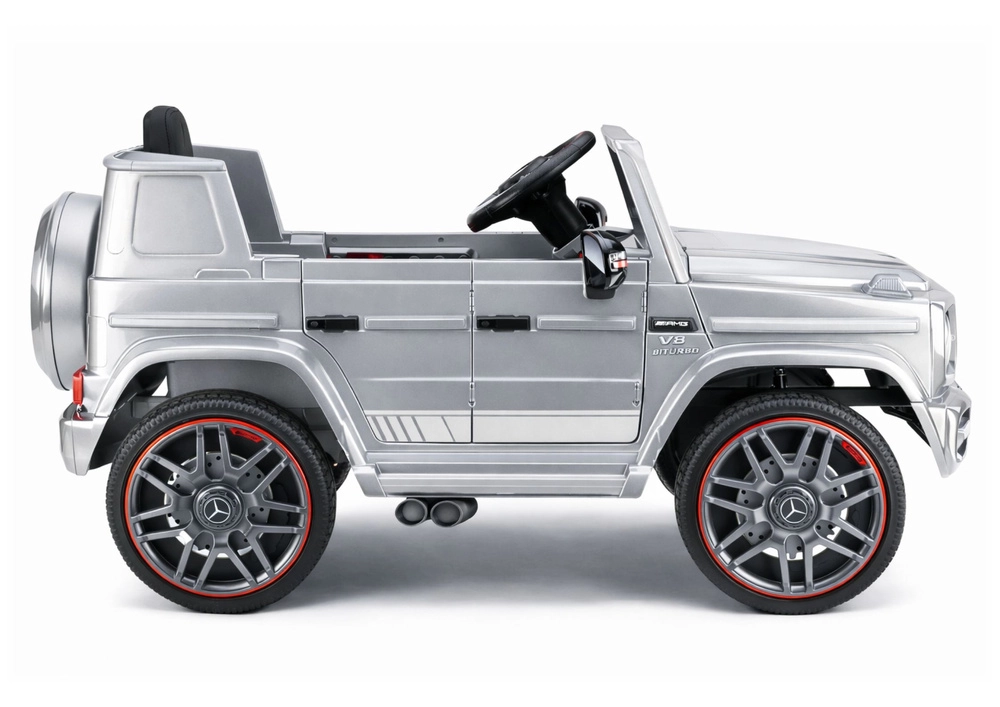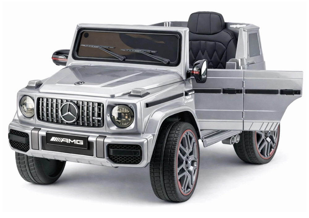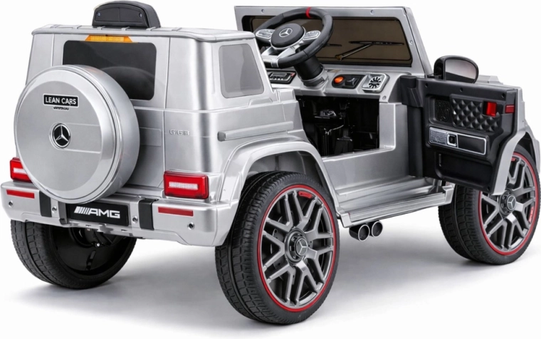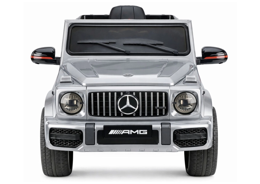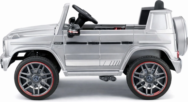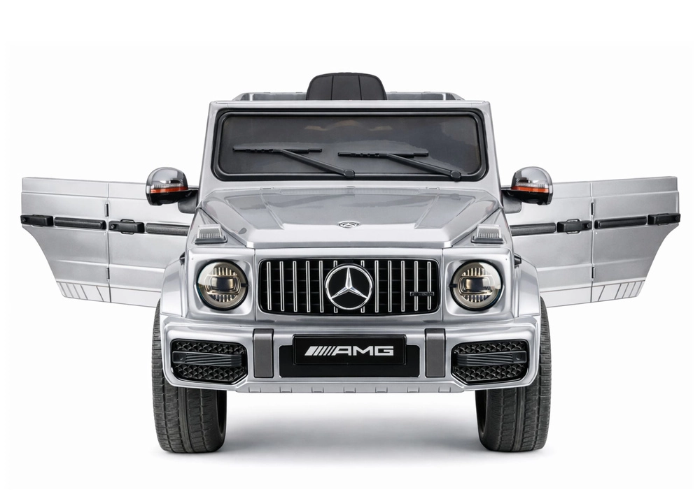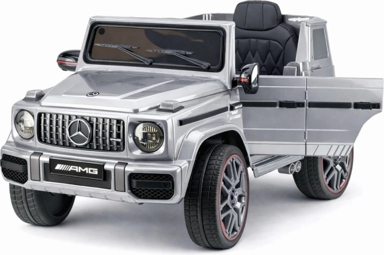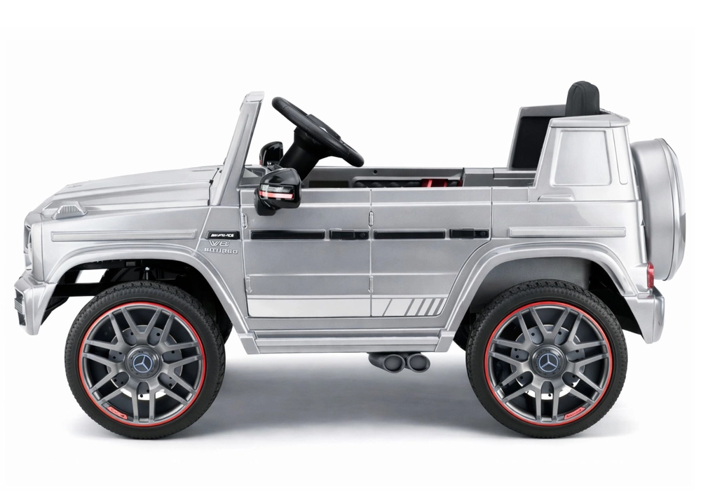 Elektryczny samochodzik MERCEDES‑AMG G 63 to doskonały wybór dla dzieci, które kochają realistyczne detale i przygodę. Precyzyjne wykonanie przedniego grilla, reflektorów i wnętrza tworzy atmosferę prawdziwego auta, a solidne koła z podkreślonym rantem podkreślają sportowy styl.