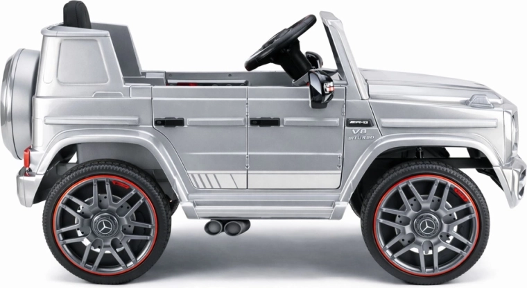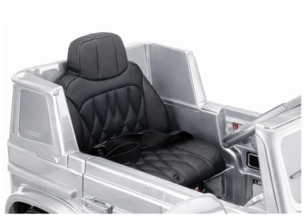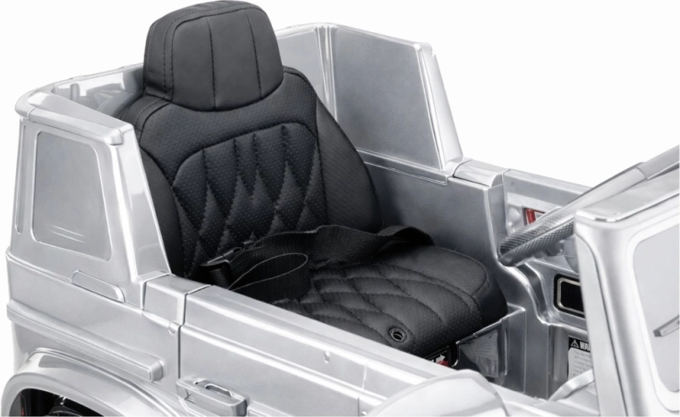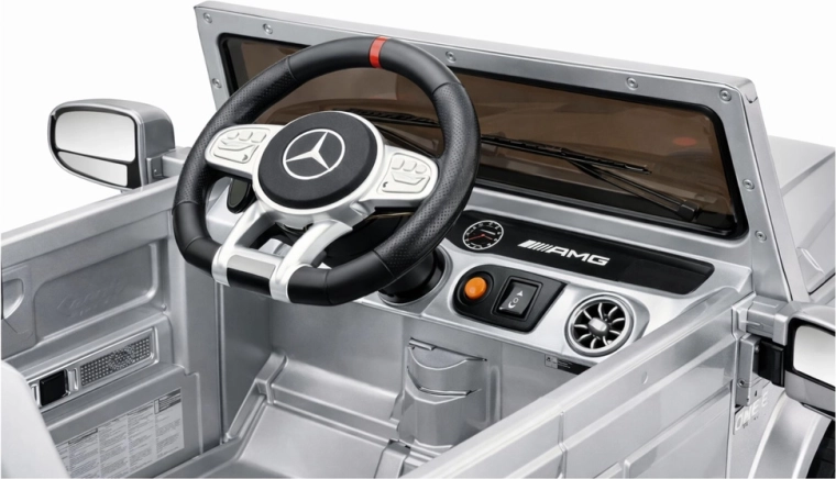 Szczegółowy przedni grill, reflektory, lusterka oraz emblematy AMG zapewniają dzieciom prawdziwe wrażenia z jazdy kultowym off-roadem.