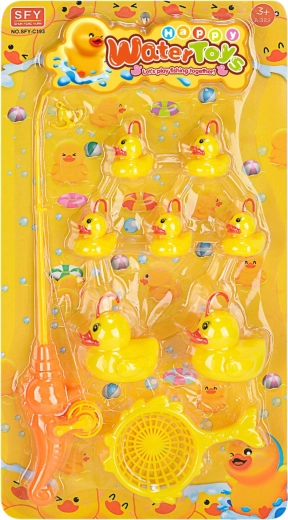 - 1× wędka z haczykiem, 1× podbierak, 7× kaczuszka z oczkiem