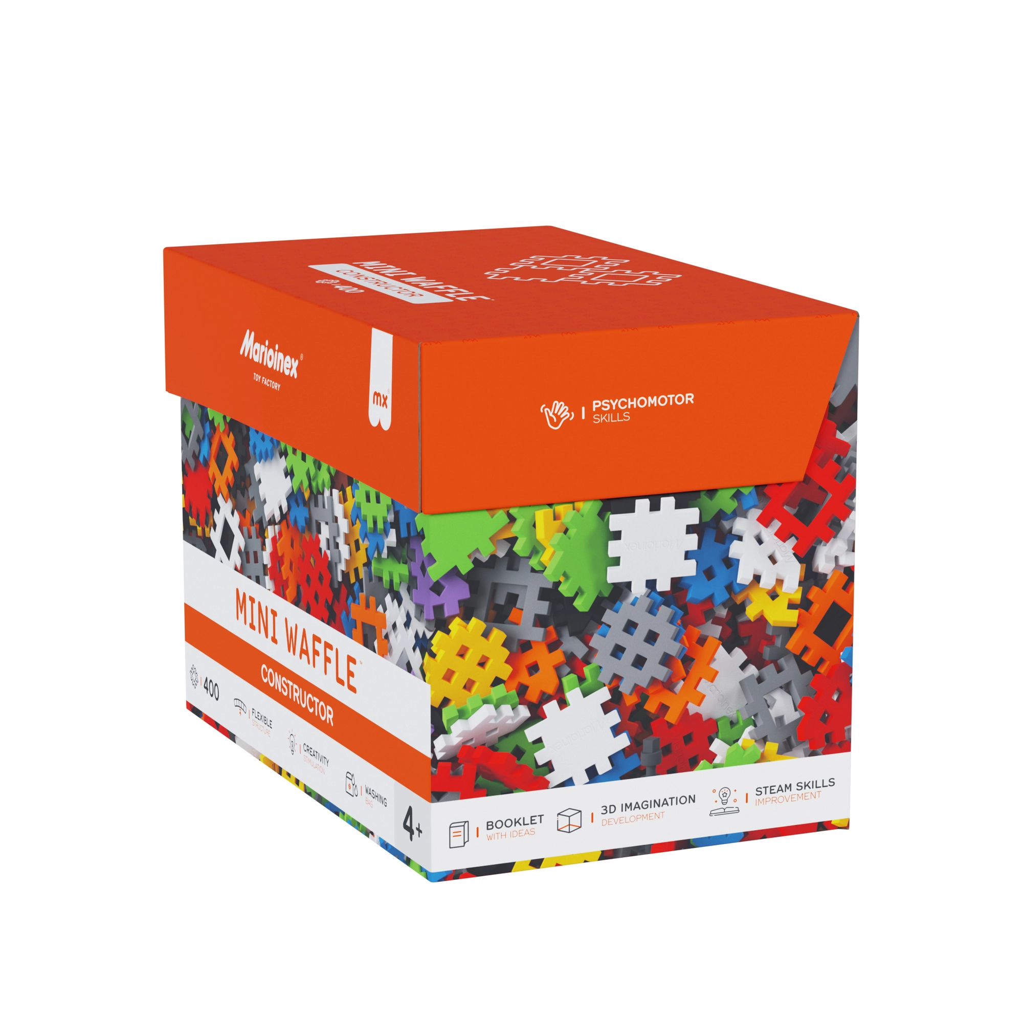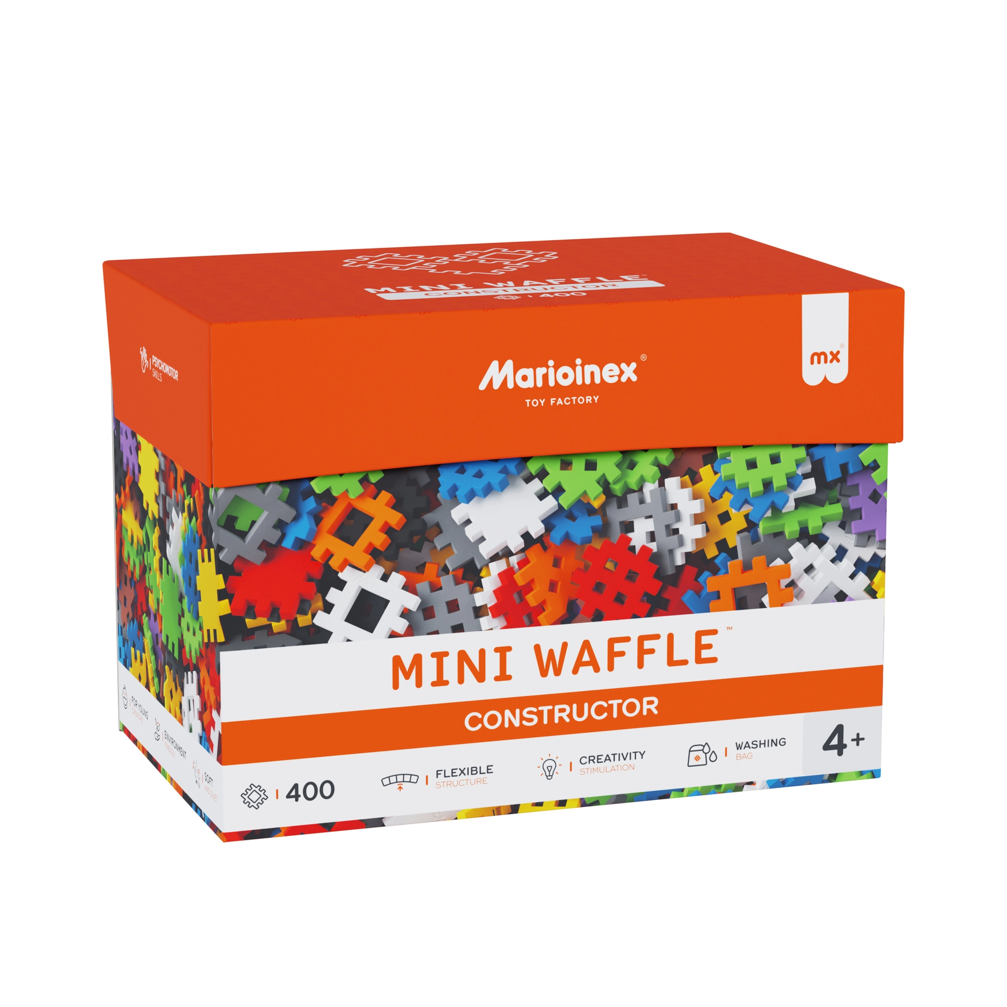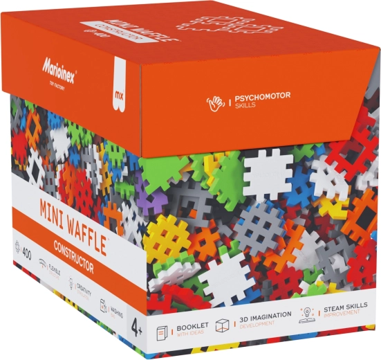 Odkryj kreatywny świat z zestawem MINI WAFFLE Constructor od MARIOINEX z 400 elastycznymi, kolorowymi elementami, które łatwo się łączą i rozłączają. Miękki i bezpieczny materiał jest przyjemny w dotyku i dopasowany do dziecięcych rąk, dzięki czemu wspiera motorykę małą, wyobraźnię i myślenie logiczne już od 4. roku życia.