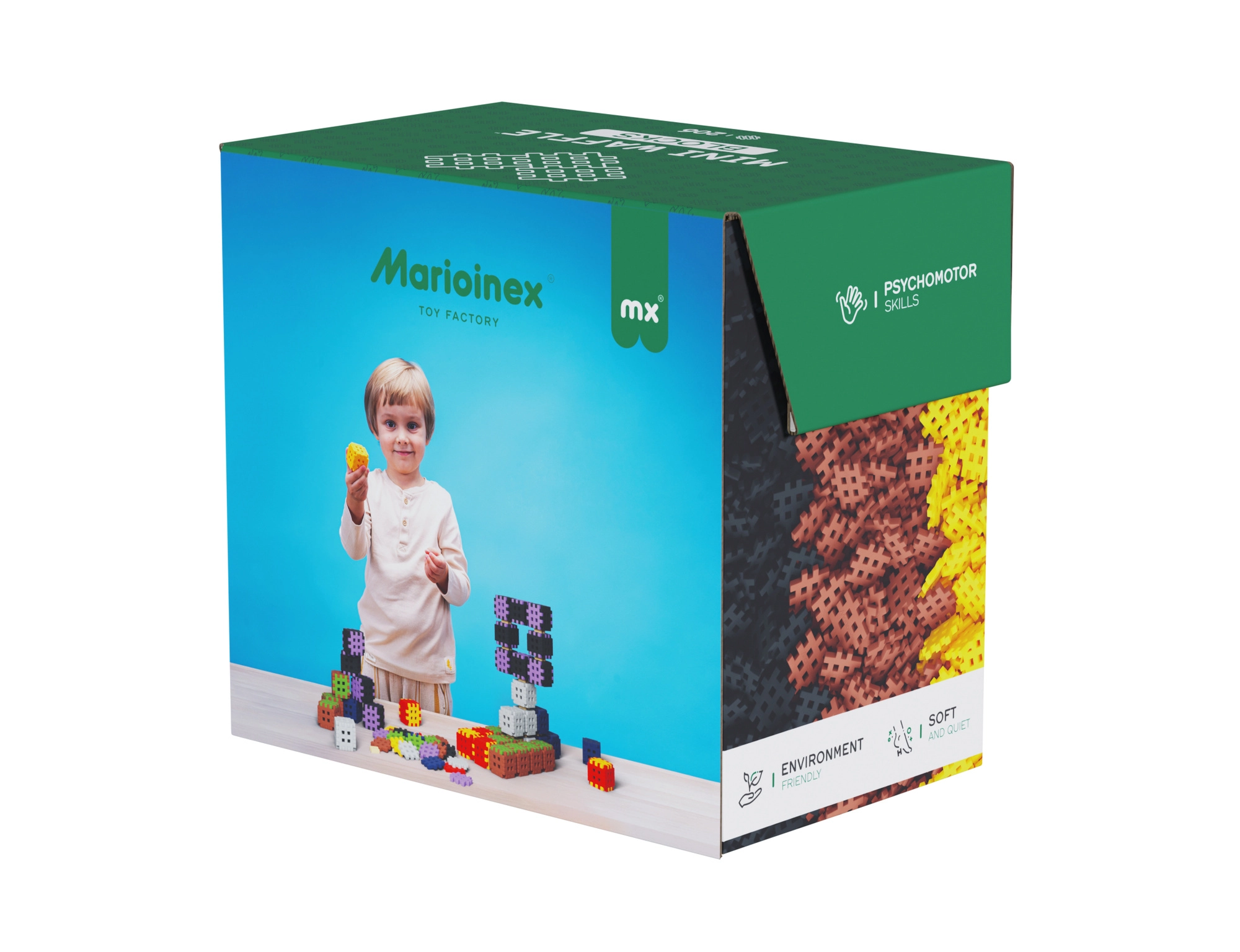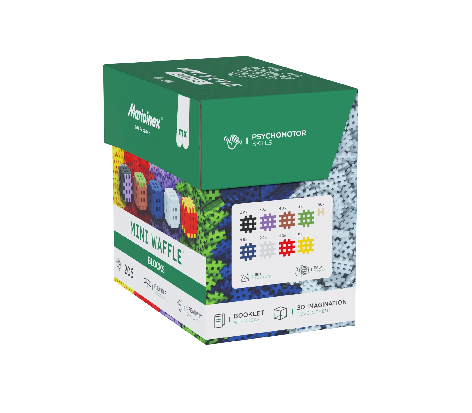 Unikalny design typu waffle pozwala na mocne i wielokrotne łączenie, więc dzieci mogą w każdej chwili przebudować swoje projekty. Zestaw rozwija kreatywność, koordynację oko–ręka oraz cierpliwość i jest odpowiedni dla dziewczynek i chłopców od 3 lat.