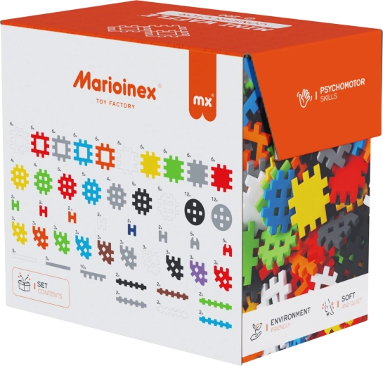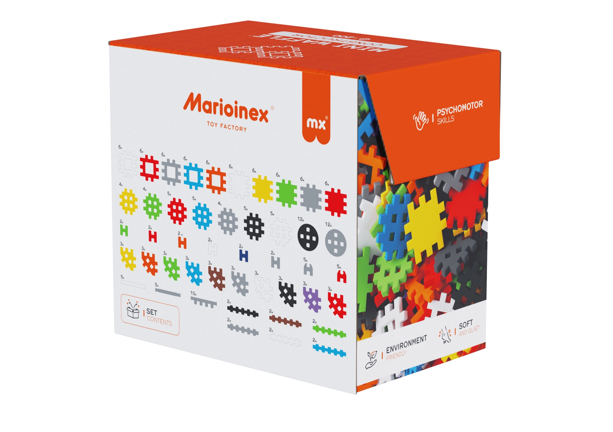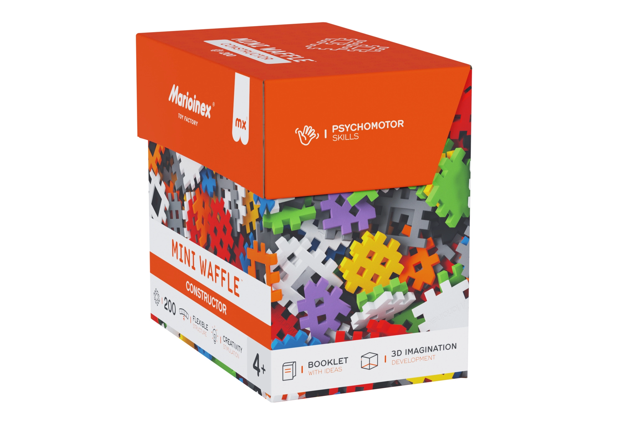 Klocki MARIOINEX Mini Waffle Constructor łączą zabawę i naukę w jednym. Dzięki unikalnym kształtom elementy składają się łatwo i trzymają stabilnie, a przy tym można je prosto rozebrać. W zestawie znajduje się inspirujący booklet z pomysłami, który pomoże przy pierwszych budowlach i pobudzi dalszą wyobraźnię.