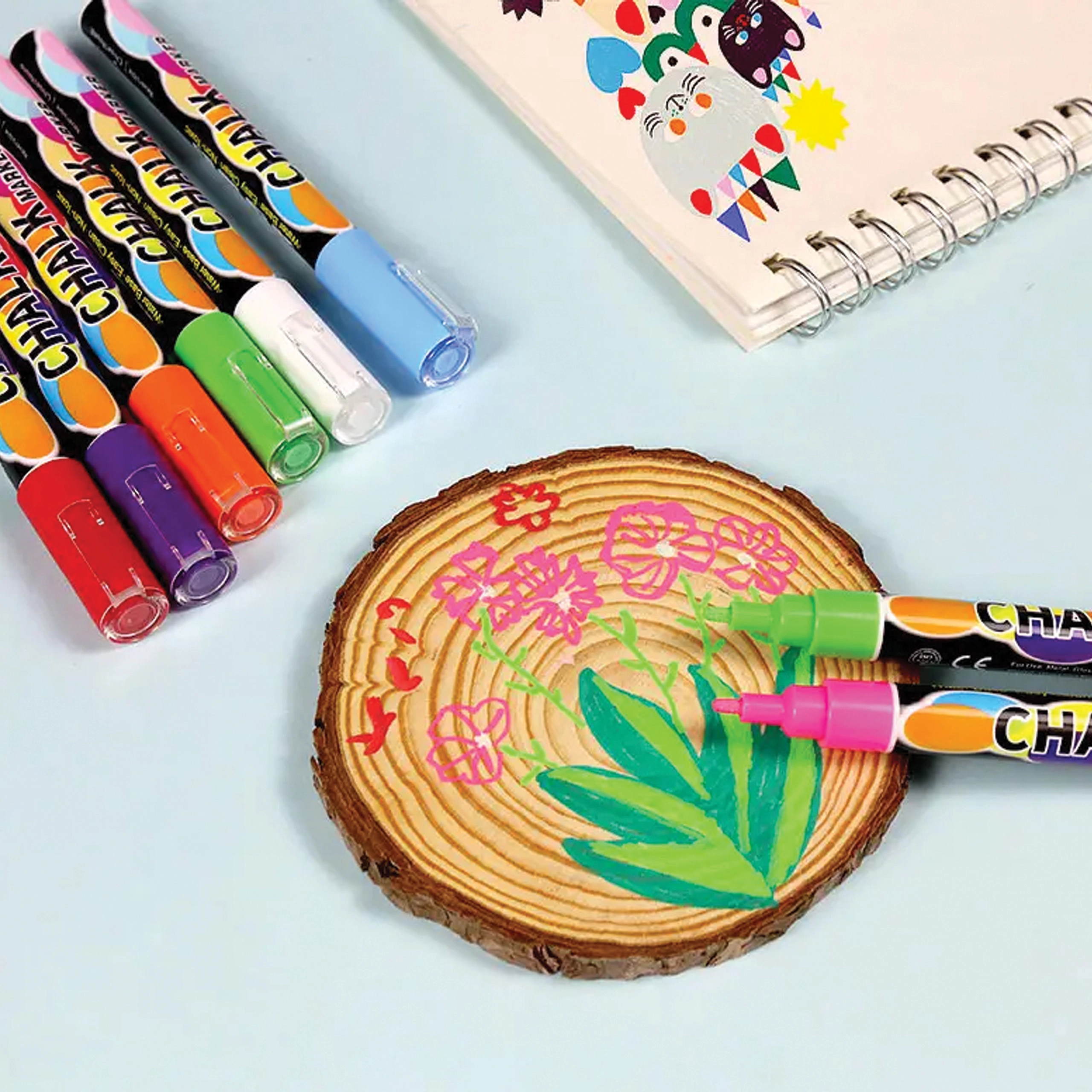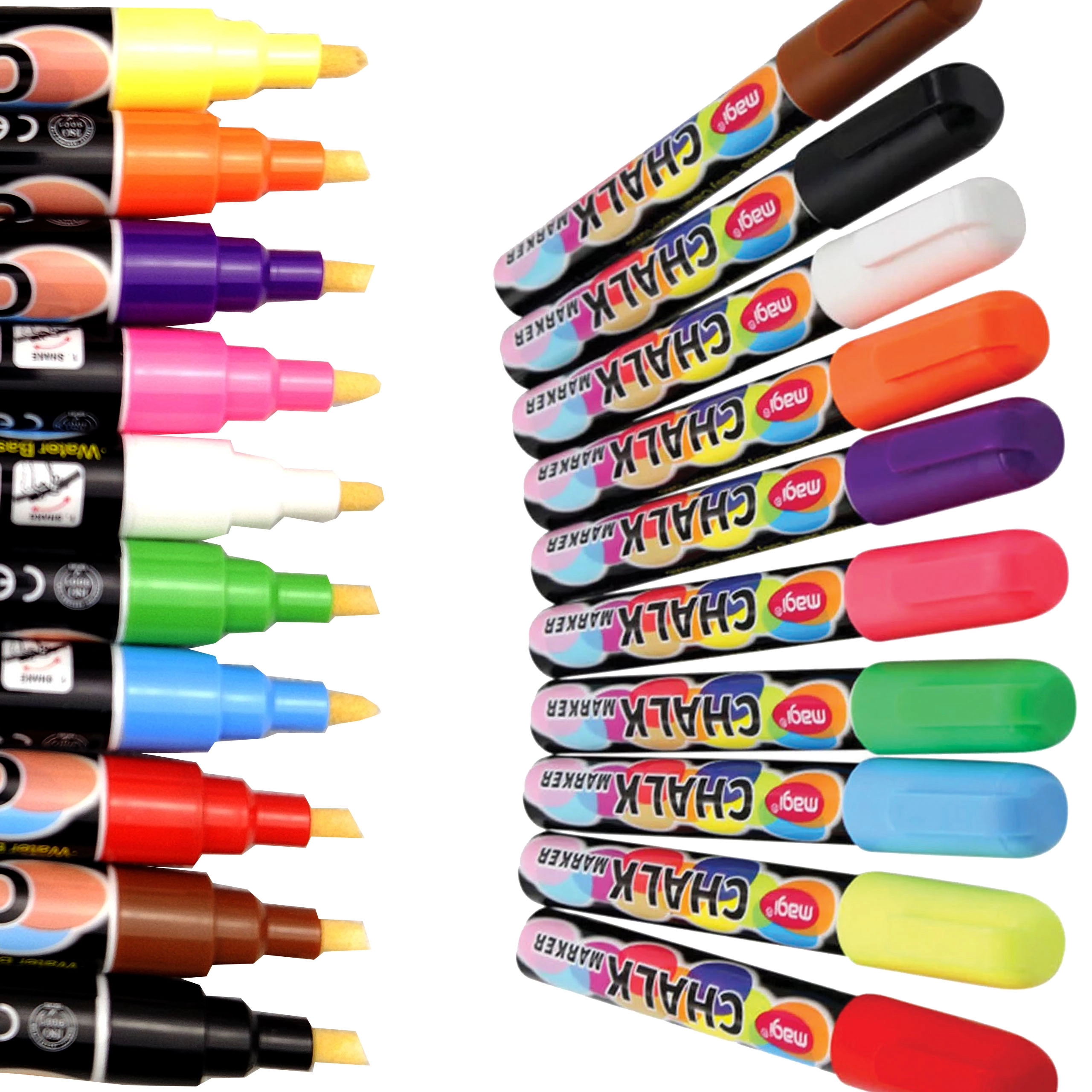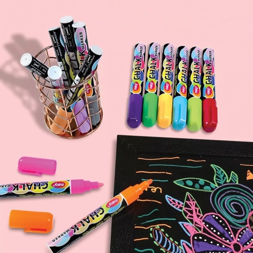 Praktyczny zestaw kredowych markerów do tablic, szkła i innych gładkich powierzchni. Atrament na bazie wody jest bezpyłowy, bezzapachowy, szybkoschnący i łatwo ścieralny wilgotną ściereczką. Idealny do biura, szkoły i domu – do prezentacji, rysowania i kreatywnych projektów z jasnymi, nasyconymi kolorami.