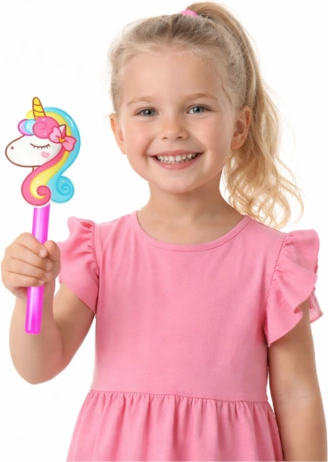 Stwórz magiczną atmosferę z różdżką z jednorożcem, która świeci jasnym neonowym światłem. Jeden patyczek służy jako różdżka, drugi umieszcza się za plakietką jednorożca, tworząc efekt świecącej sylwetki. Element łączący zapewnia stabilną konstrukcję i łatwe użytkowanie – bez potrzeby baterii.