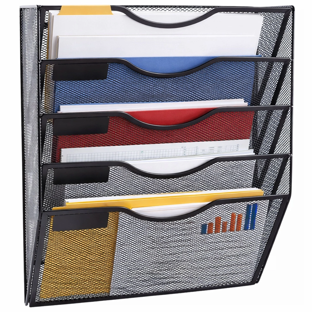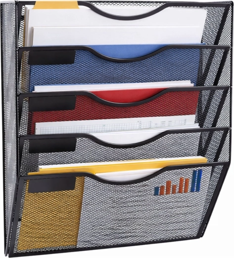 Wytrzymały korpus z malowanej proszkowo stalowej siatki sprosta codziennemu użytkowaniu, a dzięki oszczędnemu mocowaniu ściennemu zwolni cenną przestrzeń na blacie roboczym. Każda kieszeń ma miejsce na opis dla błyskawicznej orientacji.