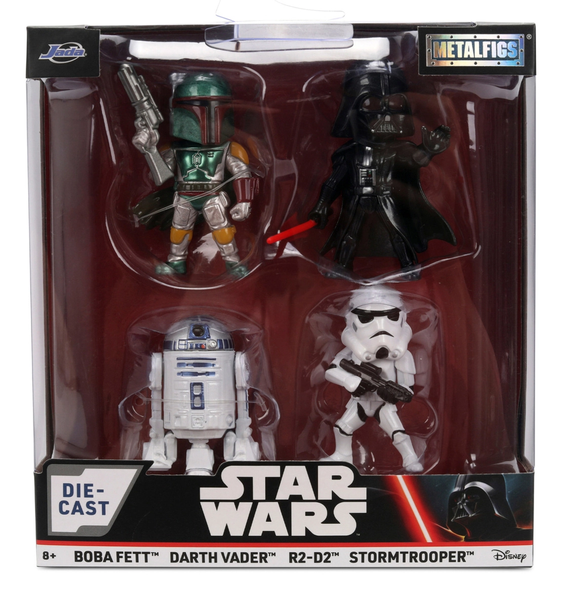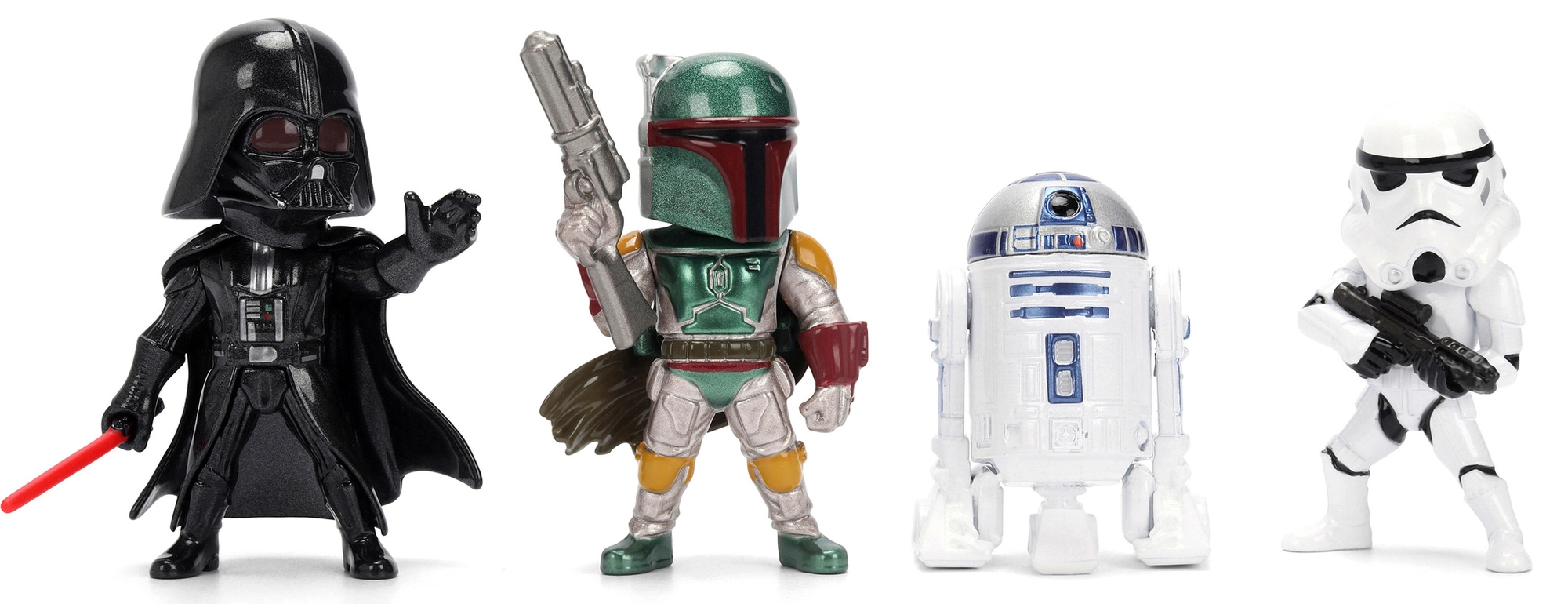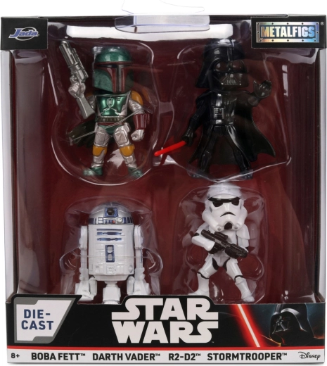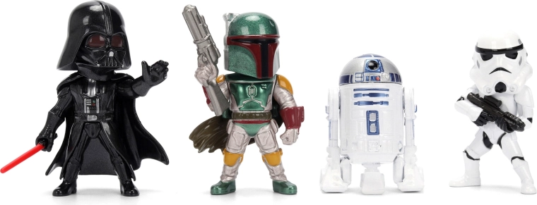 Kolekcjonerski zestaw 4 metalowych figurek z uniwersum STAR WARS od Jada Toys ucieszy fanów i dzieci. Postacie Darth Vader, R2‑D2, Szturmowiec i Boba Fett z serii Metalfigs wyróżniają się solidną metalową konstrukcją, stylizowanym designem oraz kompaktowym rozmiarem idealnym do ekspozycji i zabawy.