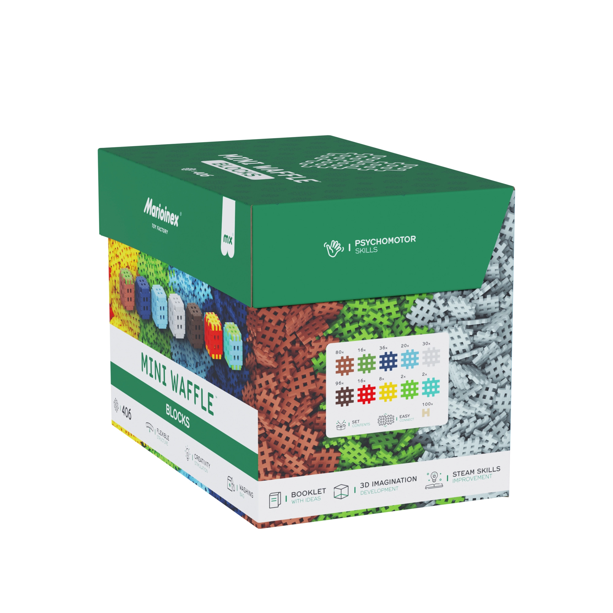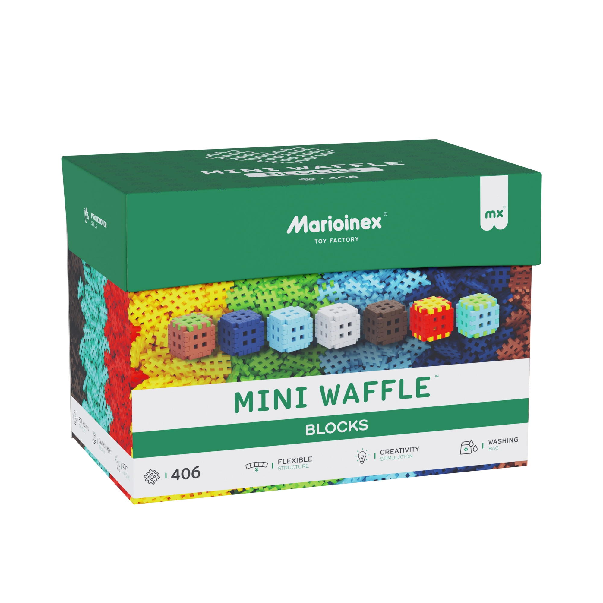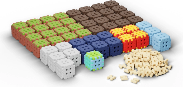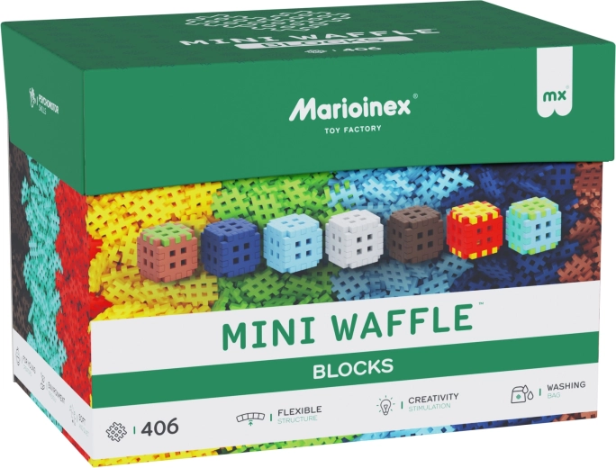 Specjalny kształt Mini Waffle ułatwia manipulację i zapewnia solidne połączenie elementów, dzięki czemu modele trzymają formę i można je wielokrotnie przebudowywać.