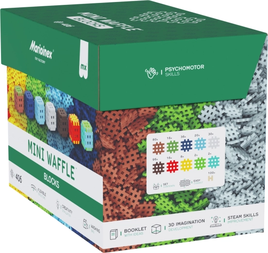 Klocki Marioinex Mini Waffle Blocks zostały zaprojektowane z myślą o radości z wolnego budowania – od figurek i pojazdów po oryginalne konstrukcje. Miękkie i plastyczne elementy w różnych kolorach dzieci łatwo chwytają i łączą, co szybko przynosi satysfakcję i chęć tworzenia dalej.