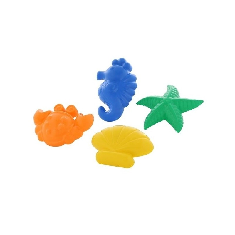 Zabawny zestaw 4 plastikowych foremek do piasku w kształtach kraba, rozgwiazdy, muszli i konika morskiego zamieni każde piaskownicę lub plażę w kreatywne warsztaty. Dzieci z łatwością tworzą piękne odciski, rozwijają małą motorykę, wyobraźnię i mają mnóstwo zabawy na świeżym powietrzu.