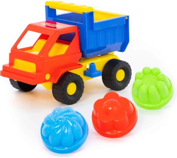 Z tym kolorowym zestawem do piasku dzieci będą się świetnie bawić, budując zamki, tunele i różne kształty. Solidne autko z wywrotką idealnie nadaje się do przewożenia piasku, kamyków i drobnych skarbów, a trzy foremki wspierają twórczą zabawę.