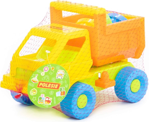 Kolorowa ciężarówka łatwo przewozi piasek, a dzięki wywrotce umożliwia szybkie wysypywanie ładunku. Świetne do realistycznej zabawy na placu budowy.