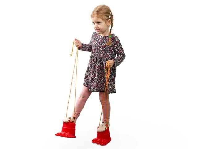 Szczudła służą do treningu stabilności, koordynacji ruchowej i właściwego wybicia w formie zabawy. Dzięki wytrzymałemu wykonaniu wytrzymują codzienne dziecięce harce i oferują bezpieczniejszy krok dzięki elementom antypoślizgowym na spodzie.