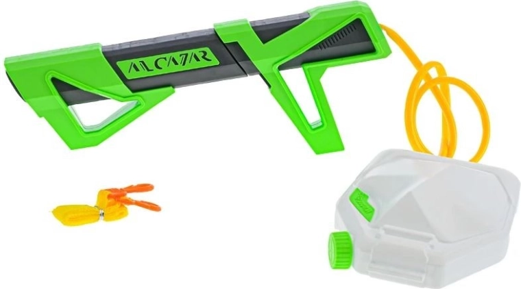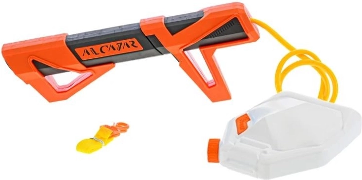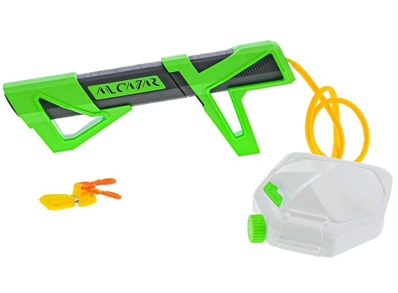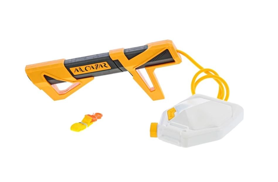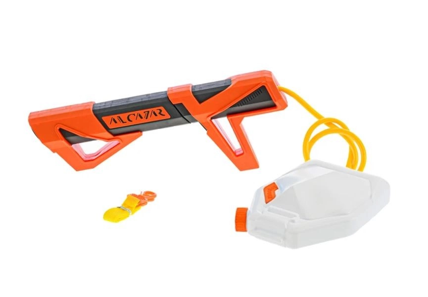 Oddzielny zbiornik na wodę połączony wężykiem umożliwia dłuższe, nieprzerwane strzelanie bez częstego uzupełniania – idealne do intensywnych wodnych bitew.