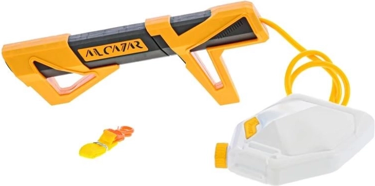 Ten pistolet na wodę z zewnętrznym zasobnikiem zapewnia dłuższą zabawę bez częstego dolewania. Wystarczy napełnić zbiornik wodą, przymocować go paskiem i można ruszać do akcji. Ergonomiczny kształt i niska waga ułatwiają trzymanie nawet młodszym dzieciom.