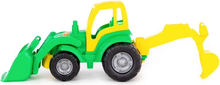 Traktor Šampión z przednią łopatą i łyżką zamieni każdą piaskownicę w mały plac budowy. Dzięki solidnemu, plastikowemu wykonaniu poradzi sobie z warunkami zewnętrznymi i codzienną zabawą w pokoju dziecięcym.