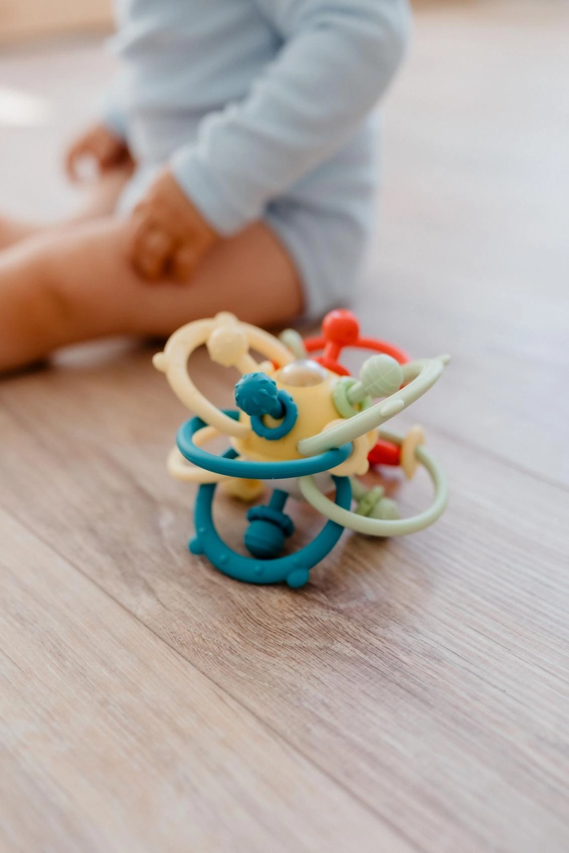Popularna zabawka dla najmłodszych łączy grzechotkę i gryzak w jednym. Splecione łuki umożliwiają wygodne trzymanie małymi rączkami, różnorodne faktury zachęcają do odkrywania, a bezpieczne materiały koją dziąsła podczas gryzienia. Dzięki lekkiej konstrukcji idealna w domu i w podróży.