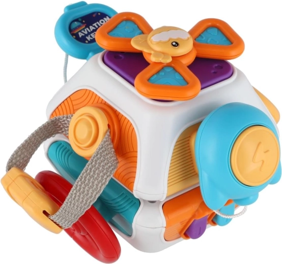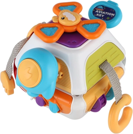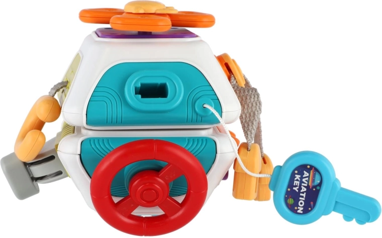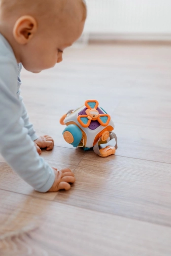 Ta wielofunkcyjna aktywna kostka stanie się ulubionym towarzyszem Twojego maluszka. Każda ścianka oferuje nowe wyzwanie – przyciski, przełączniki, suwaki, kółeczka oraz fakturowane elementy dla rozwoju sensorycznego. Dzięki kompaktowym wymiarom 11 × 12 cm i zaokrąglonym krawędziom jest idealna dla małych rączek i na podróż.