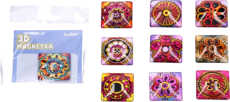 Stylowy szklany magnes z motywem mandali o wymiarach 4 × 4 cm doskonale ożywi Twoją lodówkę, tablicę lub biuro. Do wyboru jest 10 różnych wariantów z wyrazistymi kolorami i precyzyjnymi detalami. Wytrzymałe szkło zapewnia długą żywotność, a silny magnes gwarantuje pewne mocowanie notatek, zdjęć i wiadomości.